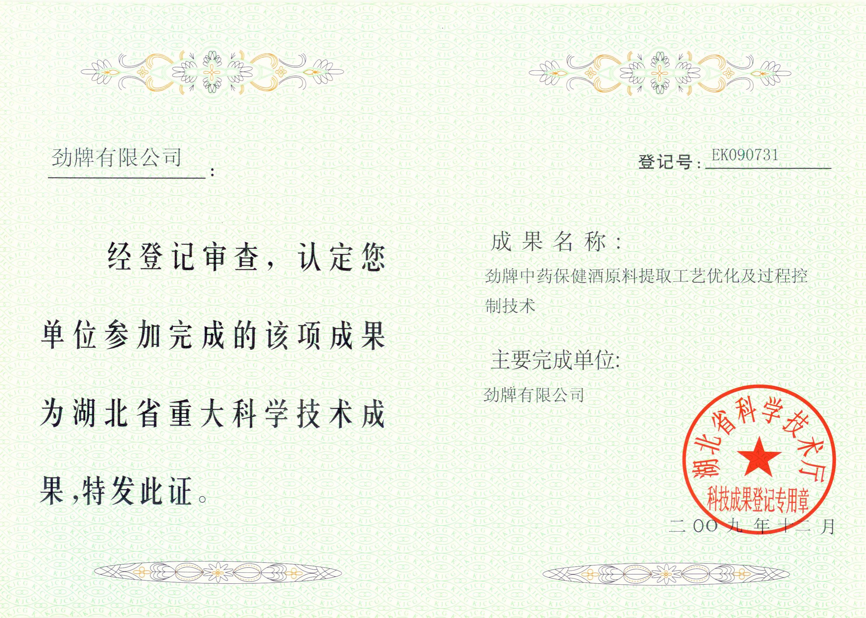 近年來,公司圍繞保健酒、草本白酒和中草藥新產品研發、產品改進和基礎應用技術,在中藥數字化提取、小曲酒釀造新工藝、中藥指紋圖譜等核心技術方面擁有自主知識產權,通過行業協會等鑒定機構技術評估22項,其中15項成果鑒定為“國際領先”水平,7項成果鑒定為“國際先進”水平。